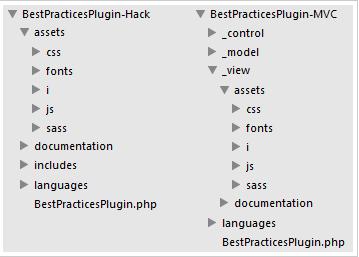 4、考慮使用MVC設(shè)計(jì)模式。WordPress插件獲得很大收益時(shí)使用MVC體系結(jié)構(gòu)創(chuàng)建的。模塊化、可維護(hù)性和許多其他原因,沒(méi)有更好的選擇。MVC使得它很容易清潔和組織你的插件架構(gòu)。奇怪的場(chǎng)合,我仍然使用我稱(chēng)之為“野生代碼”架構(gòu)。這是給小插件,一次性的有時(shí)演示功能。下面你將看到這兩個(gè)目錄結(jié)構(gòu)我通常使用插件:“野生”架構(gòu)版本向左、向右和MVC。它會(huì)給你一個(gè)更好的主意關(guān)于MVC的區(qū)別可以: