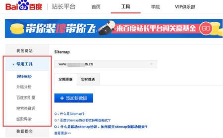 常用工具設(shè)置的初衷是好的,方便站長(zhǎng)們盡快找到最需要的工具。但是也會(huì)給新人們?cè)斐衫_,sitemap、外鏈分析等到底屬于哪個(gè)大類(lèi)呢?是屬于信息提交還是數(shù)據(jù)分析呢。所以我建議新人們先不要使用這個(gè)常用工具,而是多觀察多使用!