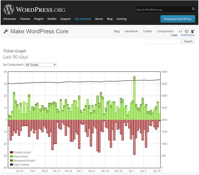 Trac經(jīng)常使用,一直是一個(gè)貢獻(xiàn)者工具持續(xù)很長(zhǎng)一段時(shí)間。Trac貢獻(xiàn)代碼之后,下一步是決定它的bug修復(fù)和功能增強(qiáng)。同時(shí),人的數(shù)量(或?qū)?huì))代碼決定的影響。較大的WordPress用戶代碼貢獻(xiàn)的影響越有可能會(huì)吸引核心貢獻(xiàn)者/開發(fā)者的注意。