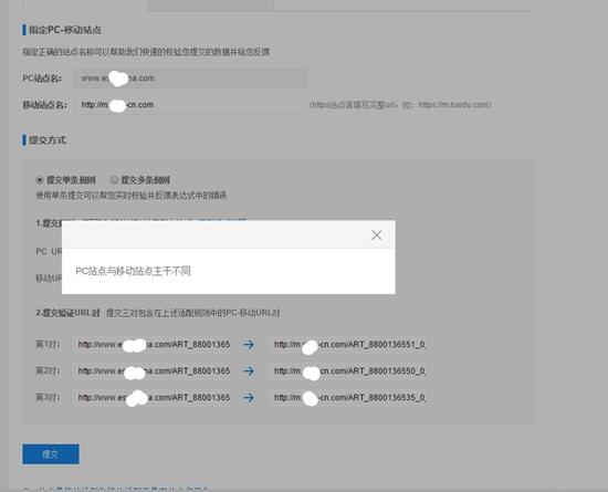 1、問:新版的移動適配工具,不支持pc和移動版domain不一樣的提交嗎?提示pc站點與移動站點主干不同。什么是主干?