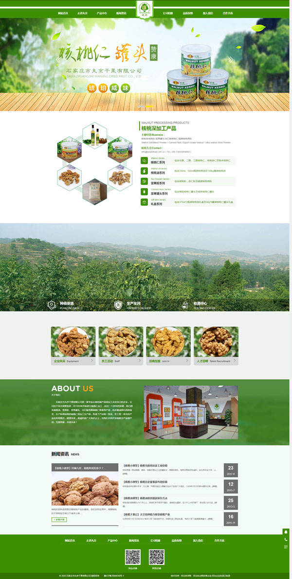石家莊市丸京干果有限公司是一家專(zhuān)業(yè)從事農(nóng)副產(chǎn)品深加工及進(jìn)出口的企業(yè),公司自1995年開(kāi)始進(jìn)行核桃仁加工,經(jīng)過(guò)20多年的發(fā)展,現(xiàn)已擁有核桃油、堅(jiān)果粉、堅(jiān)果罐頭、出口級(jí)各路核桃仁等系列產(chǎn)品,初步建成國(guó)內(nèi)品種較全、生產(chǎn)標(biāo)準(zhǔn)較高的核桃仁深加工生產(chǎn)線,其中核桃油技術(shù)、脫脂核桃微粉技術(shù)獲得了河北省科技成果證書(shū)。公司是河北省著名商標(biāo)企業(yè)、河北省優(yōu)質(zhì)產(chǎn)品企業(yè)、國(guó)家扶貧龍頭企業(yè)、河北省林果產(chǎn)業(yè)龍頭企業(yè)、石家莊市農(nóng)業(yè)產(chǎn)業(yè)化重點(diǎn)龍頭企業(yè),現(xiàn)已經(jīng)形成了產(chǎn)加銷(xiāo)一條龍、農(nóng)工貿(mào)一體化的產(chǎn)業(yè)化布局格式,展望未來(lái),真誠(chéng)歡迎廣大有識(shí)之士,與我們共同開(kāi)發(fā)核桃全產(chǎn)業(yè)鏈產(chǎn)品,互惠雙贏,共創(chuàng)未來(lái)!