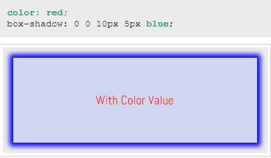 你可以通過(guò)它的名字,已經(jīng)告訴顏色值集盒陰影的顏色。它可以使用任何CSS指定顏色,指定一個(gè)顏色值是可選的。