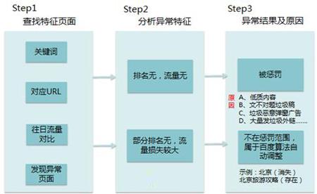 流程圖會(huì)按照三步來讓站點(diǎn)確認(rèn)到底是正常下跌還是異常下跌,在此站長第一步首先要找到特征頁面
