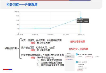 A、UGC站點(diǎn)尤其要關(guān)注這點(diǎn),之前談過要加大審核及處理力度,杜絕讓用戶創(chuàng)建垃圾內(nèi)容、個(gè)人頁面。不良分子為了排名的效果更好,會(huì)再對這些垃圾頁進(jìn)行投票。這里特別要提醒的是,如果站點(diǎn)審核力度及時(shí)就不會(huì)發(fā)生此類事情,只有站點(diǎn)內(nèi)容長期處于無人管理的狀態(tài)時(shí)才會(huì)出現(xiàn)如此問題。