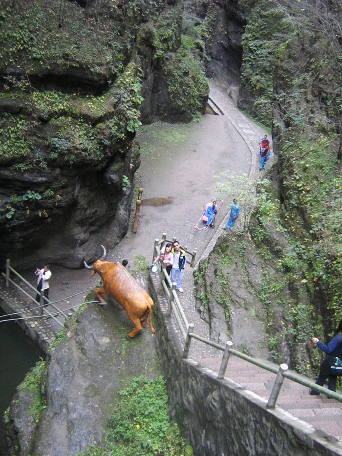 2007年10月1日清晨,車窗外下著蒙蒙細雨,河北供求網(wǎng)一行來到享有“北方小三峽”美譽的野三坡,沿途兩側(cè)崖壁連綿,奇峰峻美,水中倒影盡顯翠巒疊嶂,山水秀麗又不失壯闊。車行至百里峽前,細雨漸止。